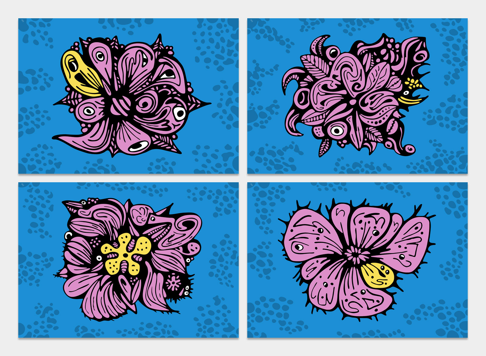 Flowers 1 - 4 / Drawings, Mixed Media / 2024