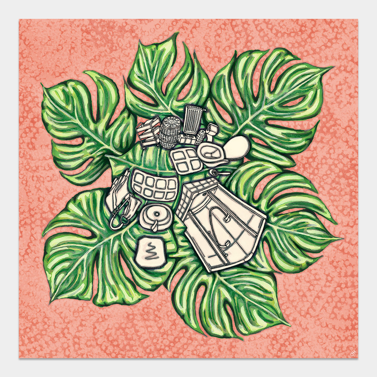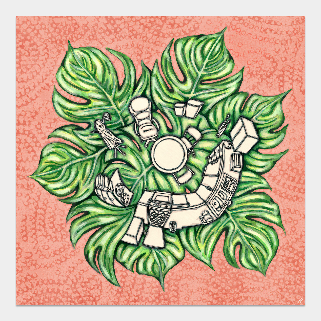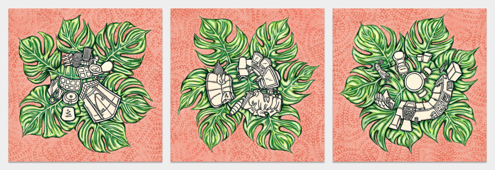 Monstera Home, Series / Drawings, Mixed Media / 2025
