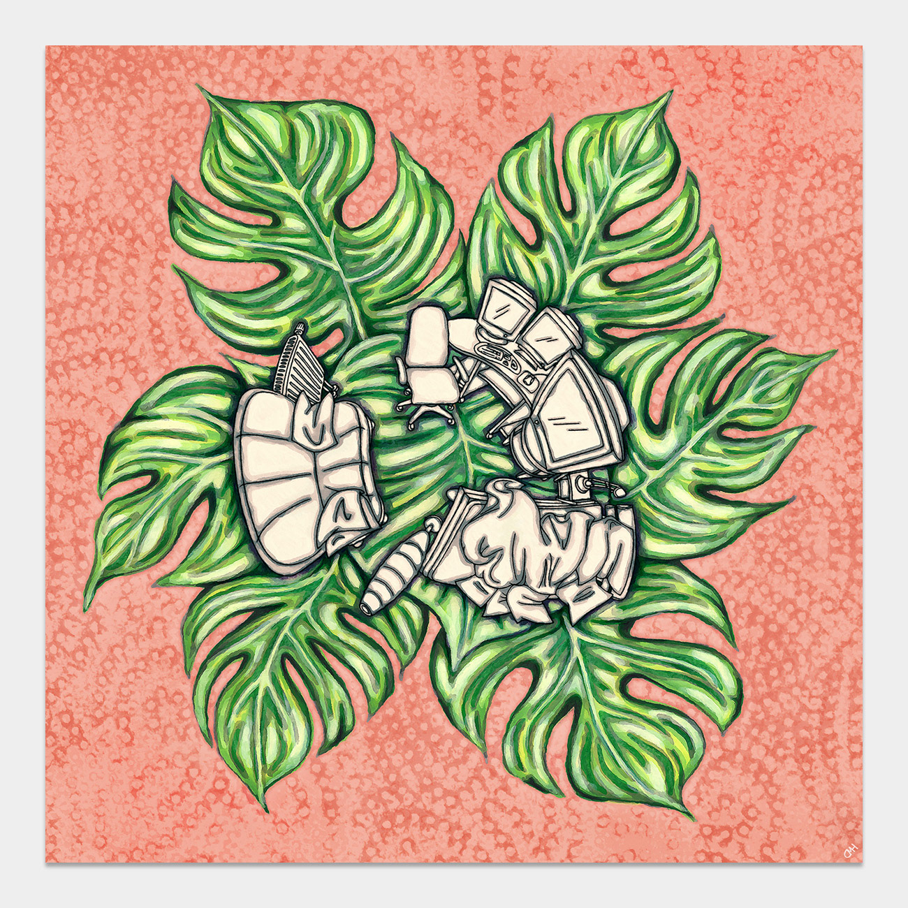 Monstera Home 3 / Drawing, Mixed Media / 2025